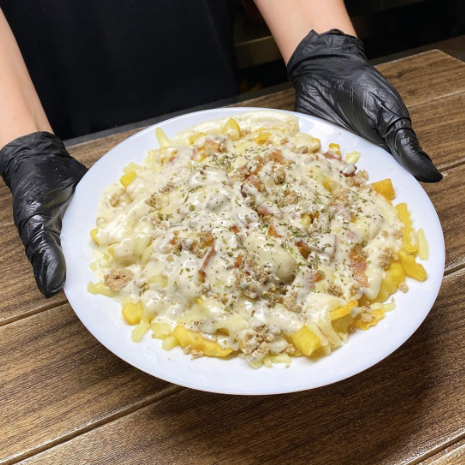 Cheese, Minced meat, Bacon, Yogurt sauce and Oregano. |